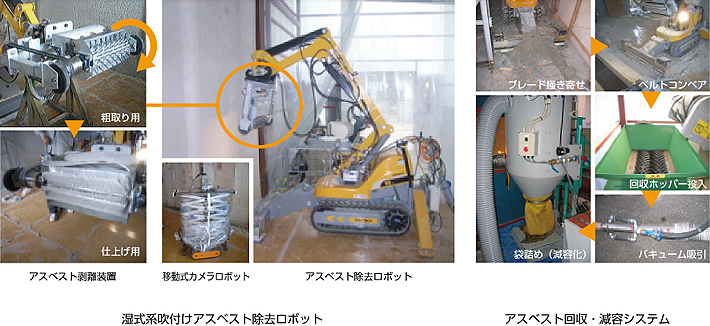 湿式系吹付けアスベスト除去ロボットおよびアスベスト回収・減容システムの開発