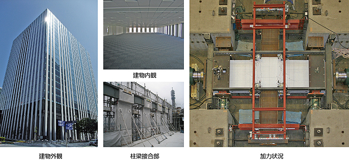自由度の高い無柱空間や透明度の高いファサードを実現し,設備システムの変更・更新が容易で,幅広い要望に柔軟な対応が可能な独自の架構システム「TASMO」を提案しています。TASMOは,剛性の高い壁柱とこれをつなぐ境界梁および壁柱脚部のオイルダンパーにより構成される制震システムで,地震時のエネルギーを集中的に制震装置に吸収させ,それ以外の架構の損傷を防ぐことで建物の長寿命化を図っています。建物外周に壁柱を配置した TASMOでは,外装材との納まりにより壁柱と境界梁が偏心して接合されます。本研究では,このような柱梁接合部の構造性能を明らかにするために構造実験を行いました。