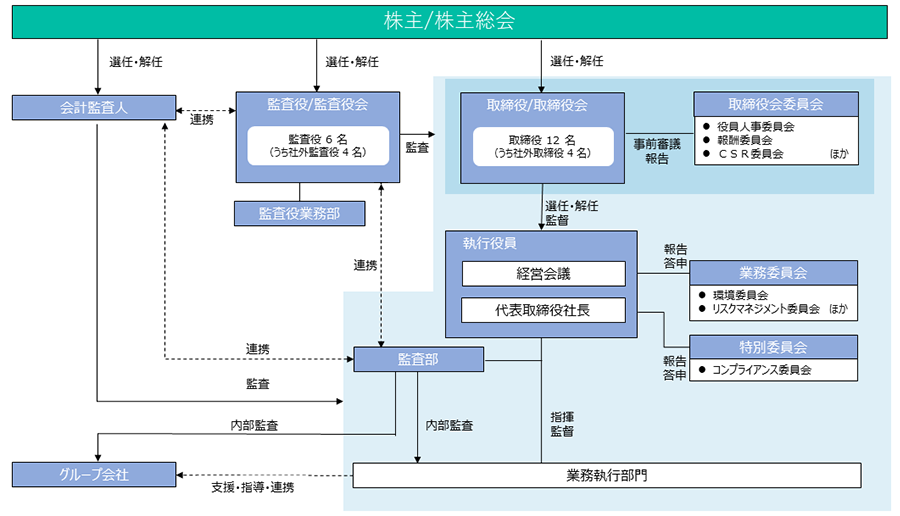 - 上記の基本的な考え方を、コーポレートガバナンス・コードの各原則への対応を踏まえて具体化した当社の「コーポレートガバナンス基本方針[PDF:580KB]」を、当社ホームページで公表しておりますので、ご参照願います。