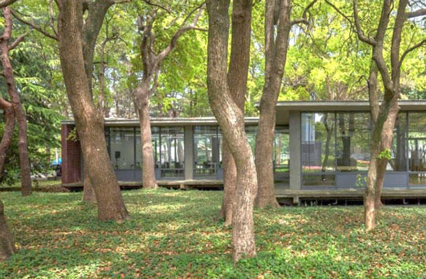 「九州工業大学 鳳龍会館」は、清家清氏設計の名建築として知られ、2008年に内外装含め、ディテールに至るまで原設計の意図を忠実に再現した大規模改修を実施しました。対角線上の梁で組まれた正方形ユニットの既存躯体による大開口を最大限生かし、より透明感の高い空間を創出しました。