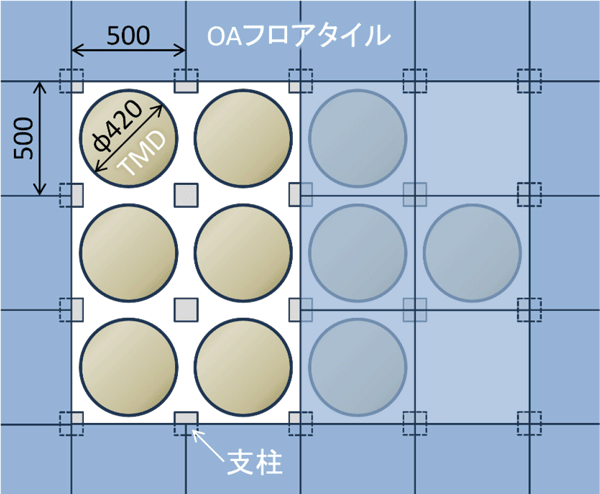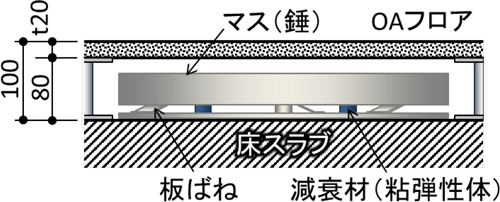 OAフロアパネル寸法、低床高にも収まる薄型円形TMDを採用(図3参照)