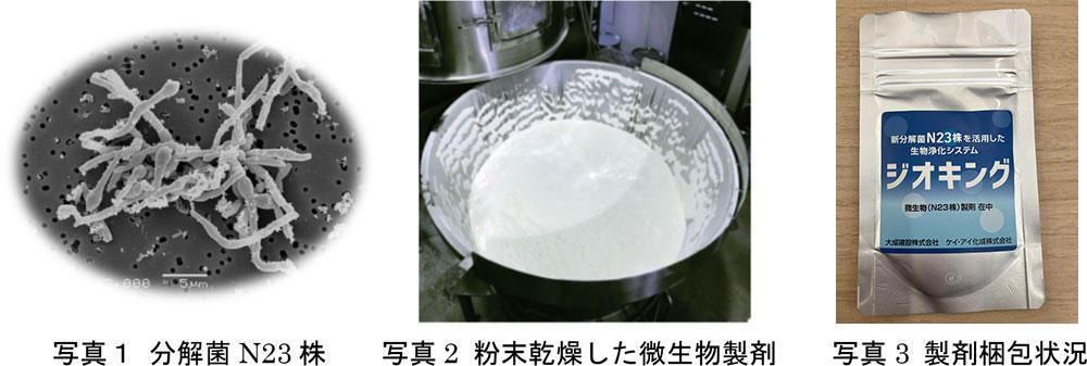 分解菌N23株を用いた微生物製剤の特長は以下のとおりです。