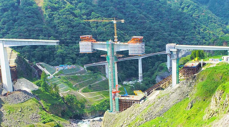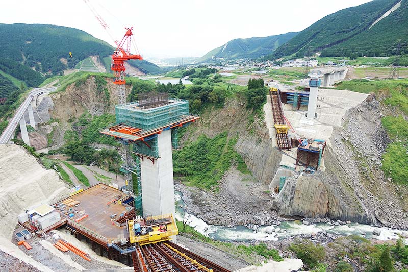 2.高橋脚の施工に威力を発揮する、ACSセルフクライミングシステム工法