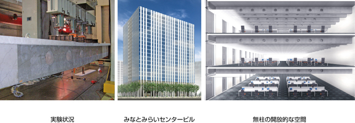 構造および耐火試験により,複数大開口を有するロングスパンPCaPC梁は,建物に要求される性能を十分満足することが確認できました。これらの成果から,大成札幌ビル,みなとみらいセンタービルでは,スパン20m以上の室内に柱のない開放的なオフィス空間を実現しました。