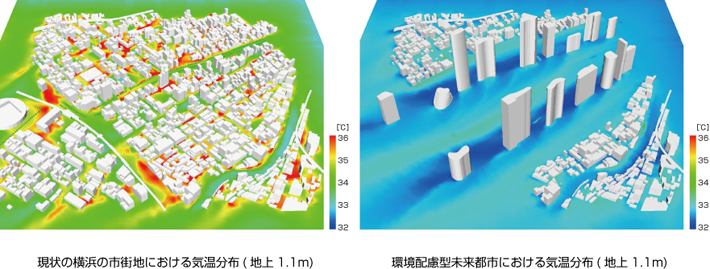 ヒートアイランド対策とされている要素技術や,建物配置,植栽等,屋外の暑熱緩和に欠かせない項目について,総合的に取り扱える3次元CFDによるヒートアイランド対策検討ツールを開発しました。本報告では,開発したツールの概要,実測との比較及び2050年を想定した環境配慮型未来都市の解析例を紹介しています。このようなヒートアイランド対策を施した建築物の計画を進めていくことにより,個々の敷地の暑熱緩和はもちろんのこと,都市全体のヒートアイランド現象の大幅な改善が期待できると考えられます。