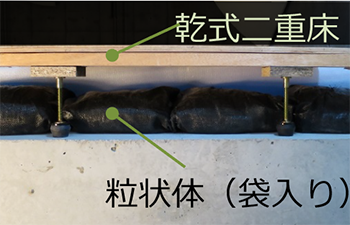 粒状体袋による動吸振の原理を利用した床スラブの振動低減技術です。粒状体袋の設置箇所が異なる2種類があります。