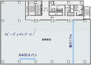 床荷重500kg/m2、ヘビー・デューティ・ゾーン:800kg/m2