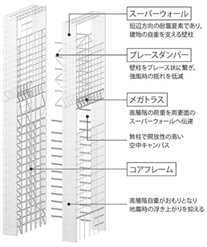 超高層免震を可能としたスーパーウォール構造システム