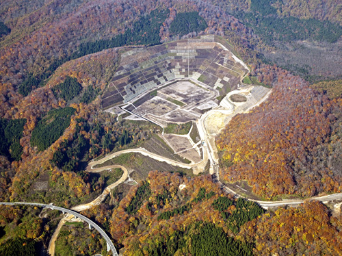 | 概要 | 胆沢ダム堤体盛立材料採取として、掘削工17,750千m3、地山対策盛土工4,375千m3、原石山法面工169,862m2を実施 |