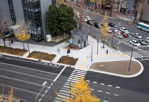 | 概要 | 御堂筋共同溝の立坑工事。8か所の立坑のうち、7箇所の立坑のシャフト部は上向きシールド工法で施工する。 |