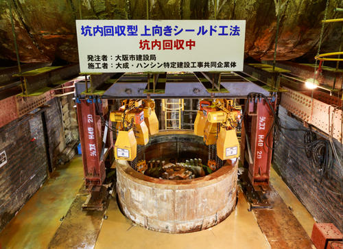 | 概要 | 本線トンネルから地上に向けて、上向きに掘進したシールド機を再びトンネル内に吊り下ろして再利用できる「坑内回収型上向きシールド工法」を開発し、3ヶ所の特殊マンホールの施工に採用。 上向きシールド工法 内径2,750mm 施工延長 35.1m |