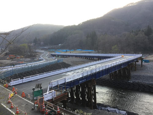 国道144号鳴岩橋緊急復旧、本復旧工事